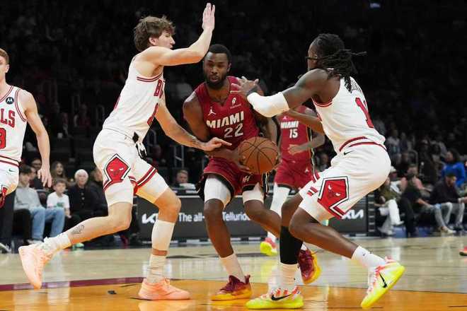 熱火上一場客場116-113險勝公牛,公牛過去3場連輸湖人、步行者與熱火遭遇3連敗,本賽季前兩次交鋒熱火均客場戰(zhàn)勝公牛。本場熱火缺少鮑威爾、希羅、米切爾與羅齊爾,公牛缺少吉迪、懷特、武切維奇等。首節(jié)前4分半鐘熱火3-12落后,熱火連追5分,公牛連得4分。熱火持續(xù)反撲追到17-20落后,卡特三分命中,維金斯三分回敬,公牛內(nèi)外開花擴(kuò)大9分優(yōu)勢。熱火再追3分,首節(jié)結(jié)束熱火25-31落后公牛。首節(jié)公牛24中12,其中三分11中4,熱火26中9,其中三分12中3。