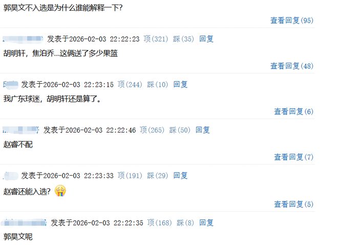 賽后球迷們?cè)u(píng)論區(qū)議論最多的話題有3個(gè),爭(zhēng)議最大的第一個(gè)問(wèn)題,郭昊文怎么沒有入選?第二個(gè)問(wèn)題,趙睿怎么還能進(jìn)?第三個(gè),是周琦為何這次也落選了?