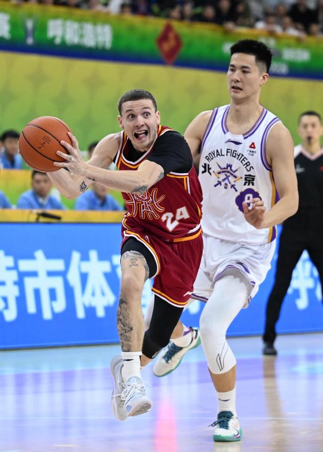 2月7日,北京控股隊(duì)球員羅漢?。ㄓ遥┰诒荣愔袔蛲黄?。新華社記者 貝赫 攝