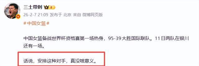 這場一邊倒的勝利,引來媒體人“三土帶刺”尖銳批評:“安排這種對手,真沒啥意義?!薄徽Z道破核心矛盾:熱身賽的真正價值,是檢驗短板、磨合體系、模擬強敵,而非在弱旅身上刷數據、找自信。