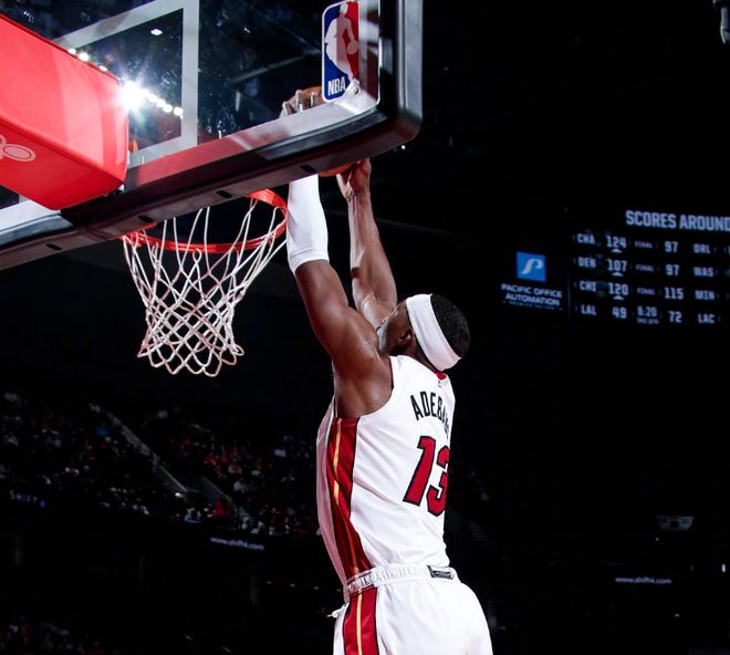 重新回到賽場(chǎng)之后,爵士開(kāi)始在內(nèi)線夾擊阿德巴約,直接導(dǎo)致后者的命中率顯著下滑,不過(guò)四節(jié)戰(zhàn)罷,阿德巴約還是砍下了26分、15個(gè)籃板、2次助攻和1個(gè)封蓋的兩雙數(shù)據(jù),讓熱火始終保持著籃板球上的巨大優(yōu)勢(shì)。