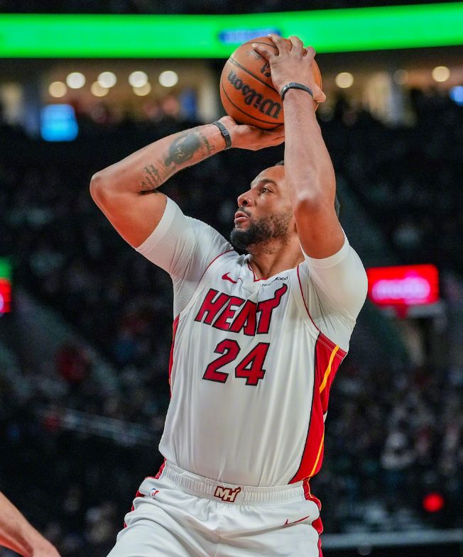 阿德巴約被包夾之后,維金斯也扛起了組織全隊(duì)進(jìn)攻的重任,打出了17分、6個(gè)籃板、6次助攻和1次搶斷的全能表現(xiàn),在他的梳理之下,熱火一共有7名球員得分上雙,不過(guò)鮑威爾手感不佳,只有11投3中的發(fā)揮,但并不影響熱火收獲一場(chǎng)勝利。