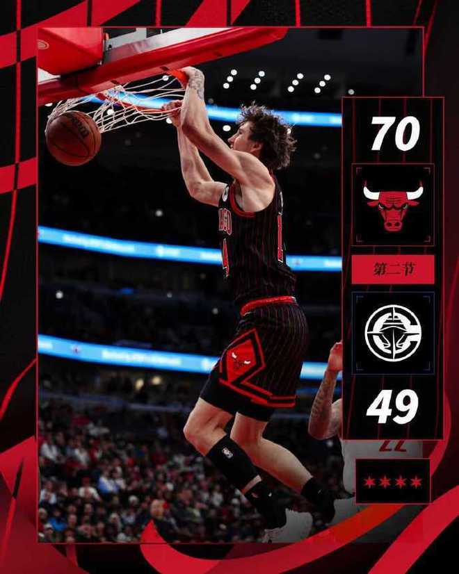 公牛:懷特6記三分27分6助攻,布澤利斯4記三分21分4助攻,史密斯10分9籃板,武切維奇19分8籃板4助攻,多森姆4記三分18分,赫爾特4記三分14分,瓊斯15分8籃板10助攻。