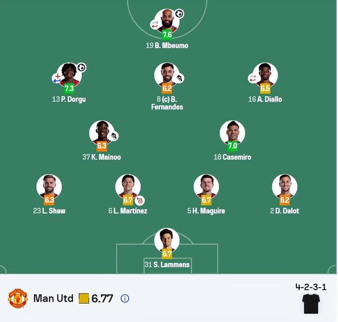 不過(guò),曼聯(lián)的回應(yīng)迅速而堅(jiān)決。第36分鐘,阿森納中場(chǎng)蘇維門迪回傳失誤,曼聯(lián)前鋒姆伯莫機(jī)敏搶斷后單刀推射扳平比分。下半場(chǎng)開(kāi)始僅5分鐘,B費(fèi)與多爾古在禁區(qū)前沿完成精妙撞墻配合,后者遠(yuǎn)射轟出世界波,曼聯(lián)2-1反超。