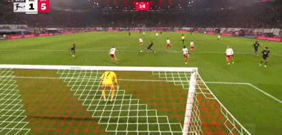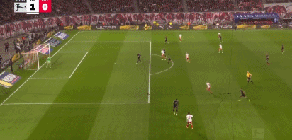 易邊再戰(zhàn),比分落后的拜仁加強進攻,開場僅4分鐘,拜仁右路壓上高位逼搶,于帕梅卡諾禁區(qū)前沿斷球直接就是“精妙直塞”,格納布里突入禁區(qū)接球獲得小角度單刀,格納布里冷靜推射遠角得手,拜仁1:1扳平比分,這球也是拉響了拜仁的反攻號角。第66分鐘,拜仁右路壓上,奧利斯禁區(qū)邊上突破下底傳中,巴庫解圍失誤沒有踢到球,他身后的凱恩將球卸下,稍作調整后近距離爆射,皮球應聲入網,拜仁2:1反超比分。