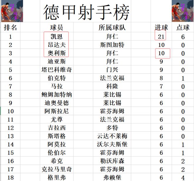 射手榜方面,凱恩今天打入一球,21球繼續(xù)擴大領先優(yōu)勢。奧利斯1射3傳,追上昂達夫,兩人10球并列第2。迪亞斯,塔巴科維奇9球并列第4,吉拉西,阿莫拉,??说热?球剛好擠入前十。