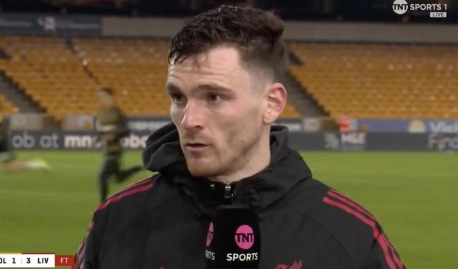 足總杯1/8決賽,利物浦客場3-1擊敗狼隊,此役傳射建功的羅伯遜賽后接受了TNT體育的采訪。