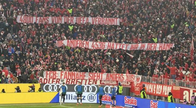 由于多次在煙火的使用上違規(guī),拜仁南看臺的球迷原本在本周中對陣圣吉羅斯聯(lián)合的歐冠比賽中被禁止入場。但活躍德球迷仍然設法進入了球場:他們臨時從下層看臺轉移到上層看臺,依舊制造了熱烈的助威氛圍,同時也帶來了清晰的抗議信息。